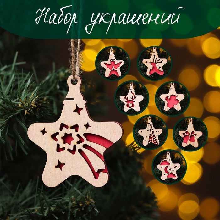 Новый год. Новогодний набор "звездочки" 8 штук, 2025, цвет красный