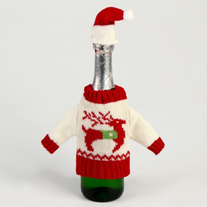 Новый год! Одежда на бутылку «Свитер с оленем»