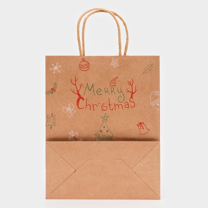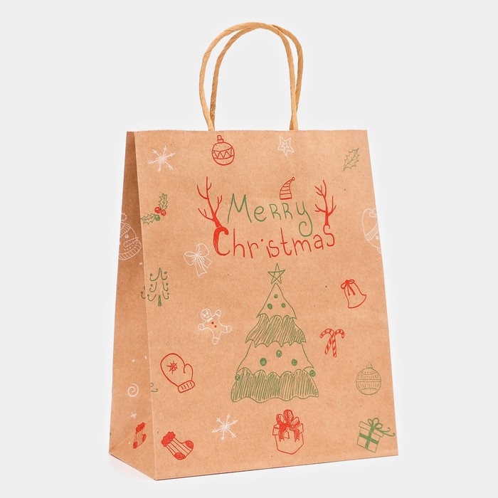 Новый год. Пакет бумажный подарочный новогодний крафт "Ёлка", 27 х 21 х 11 см.