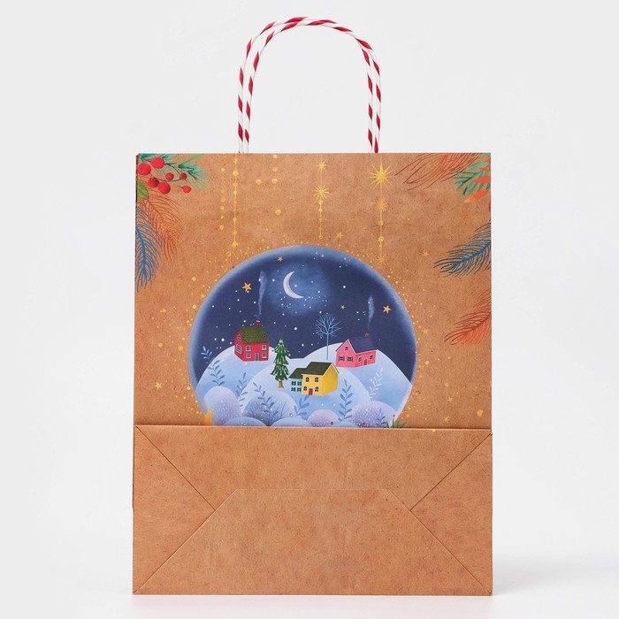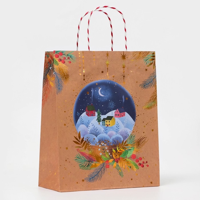 Новый год. Пакет бумажный подарочный новогодний крафт "Рождественский стекляный шар" 18 х 22,3 х 10 см.