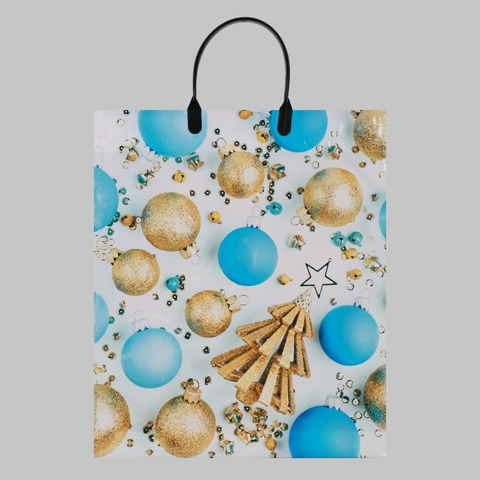 Новый год. Пакет "Елочка с шарами", полиэтиленовый с пластиковой ручкой, 38х45 см.
