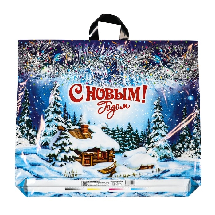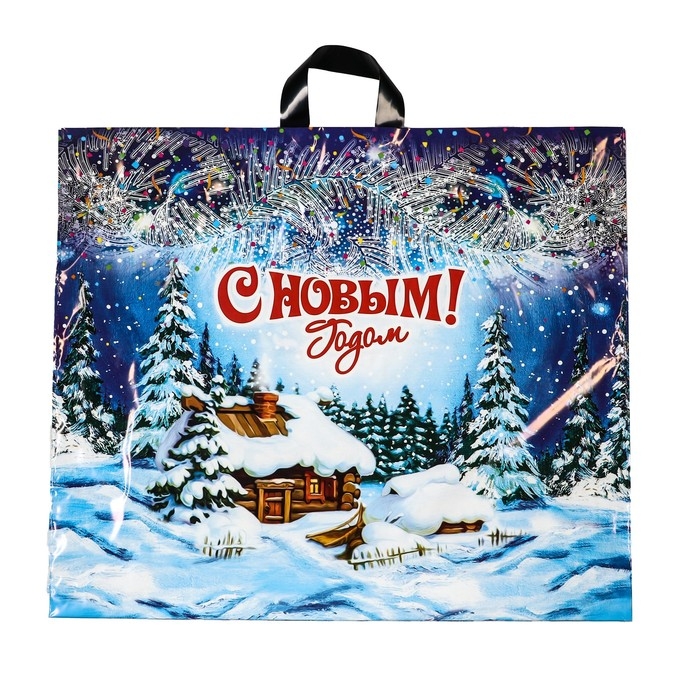Новый год. Пакет "Хуторок", полиэтиленовый с петлевой ручкой, 60х50 см.