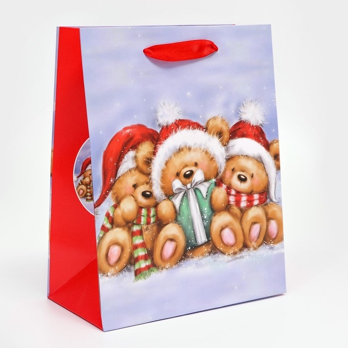 Новый год. Пакет подарочный, ламинированный, "Медвежата",18 х 23 х 10 см.