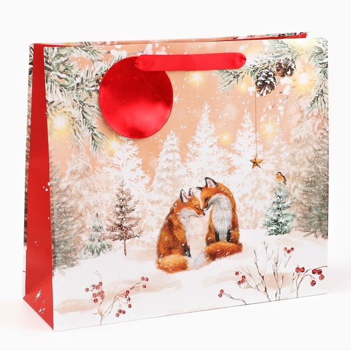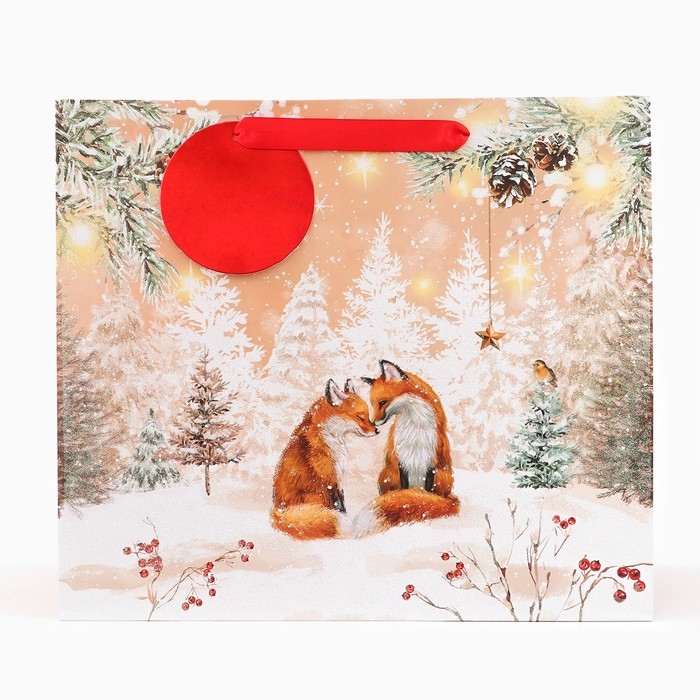 Новый год. Пакет подарочный "Лисята", люкс, 36 х 32 х 12 см.