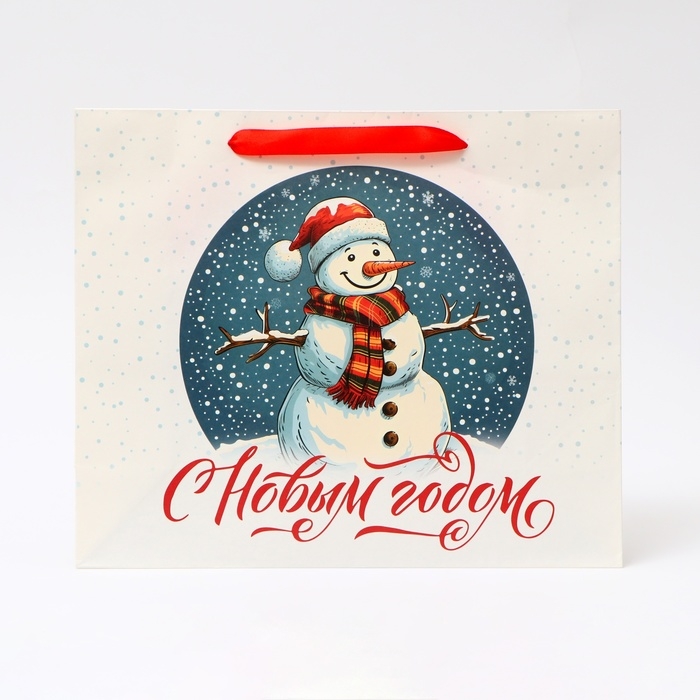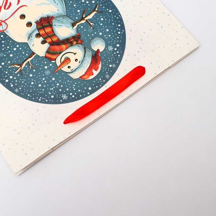 Новый год. Пакет подарочный новогодний бумажный, "Снеговик", 31 х 26 х 11 см.
