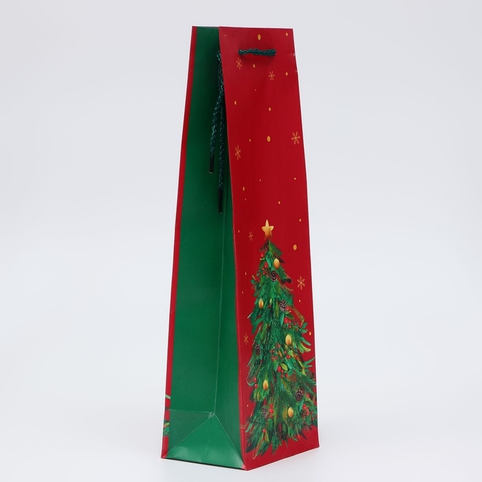 Новый год. Пакет подарочный новогодний под бутылку, упаковка "Ёлка", 12 х 36 х 8,5 см.