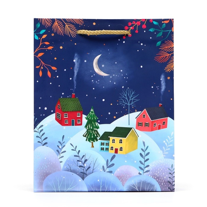 Новый год. Пакет подарочный "Зимняя ночь", 18 х 22,3 х 10 см.