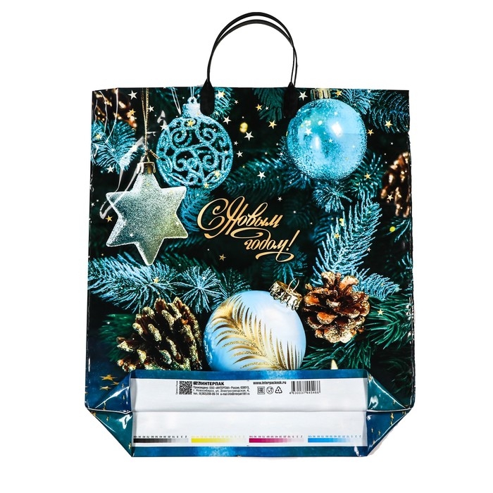 Новый год. Пакет "Золотые шишки", полиэтиленовый с пластиковой ручкой, 40 х 44 см.