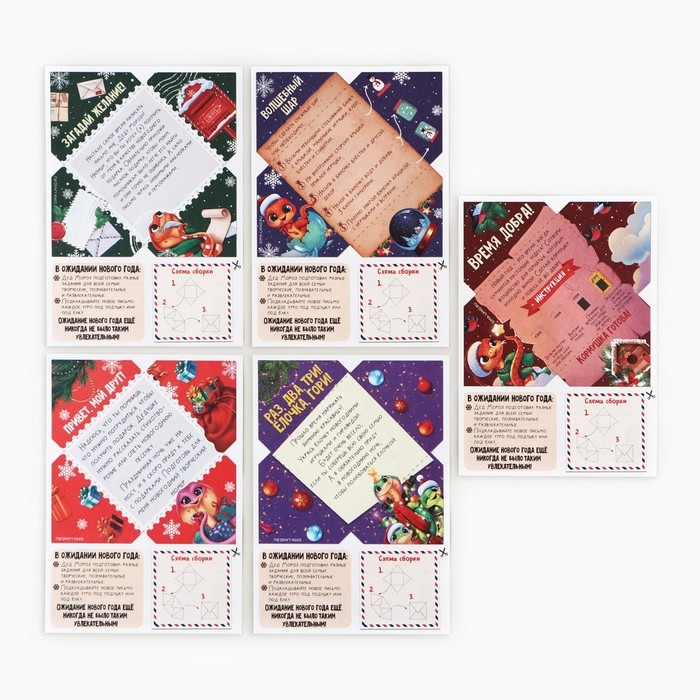 Этот набор включает в себя 5 писем от Деда Мороза, каждое из которых содержит загадку или задание, связанное с поиском подарка.