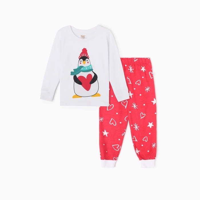 Новый год. Пижама детская НГ Пингвин, цвет белый/красный, рост 98