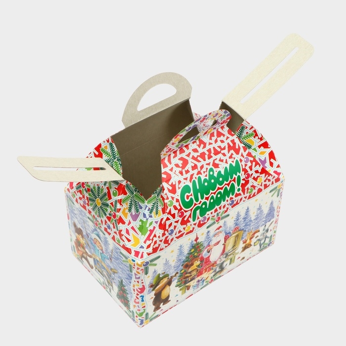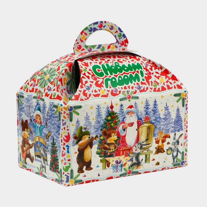 Коробка выполнена из качественных материалов, которые обеспечивают сохранность содержимого. Она имеет яркий и красочный дизайн, который отражает атмосферу Нового года.