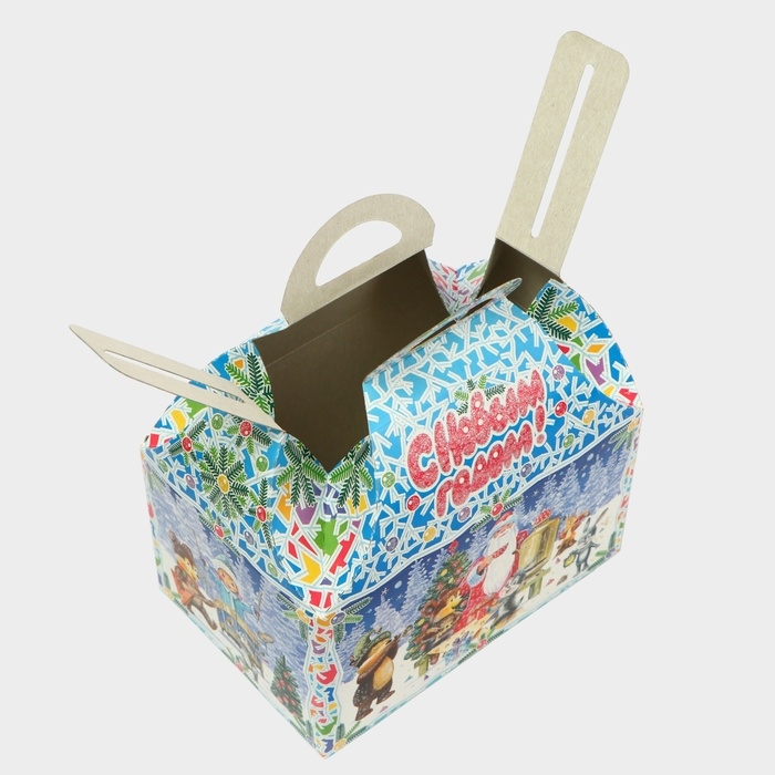 Коробка выполнена из качественных материалов, которые обеспечивают сохранность содержимого. Она имеет яркий и красочный дизайн, который отражает атмосферу Нового года.
