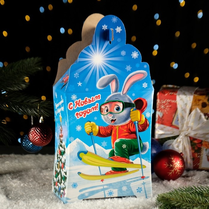 Новый год. Подарочная коробка "Лыжные гонки", 33 х 20 х 13 см.