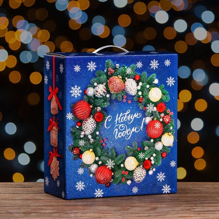 Новый год. Подарочная коробка "Новогодний декор" , 28,5 х 14 х 33 см.