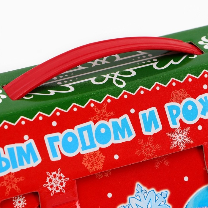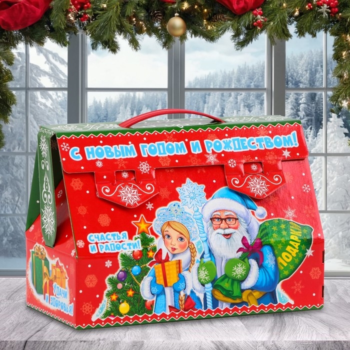 - Коробка выполнена из высококачественного картона, который не только прекрасно удерживает форму, но и гарантирует надёжность и долговечность. Ярко оформленная, она украшена красочными новогодними мотивами. Каждый элемент дизайна продуман до мелочей, чтобы создать ощущение праздника и сказки.