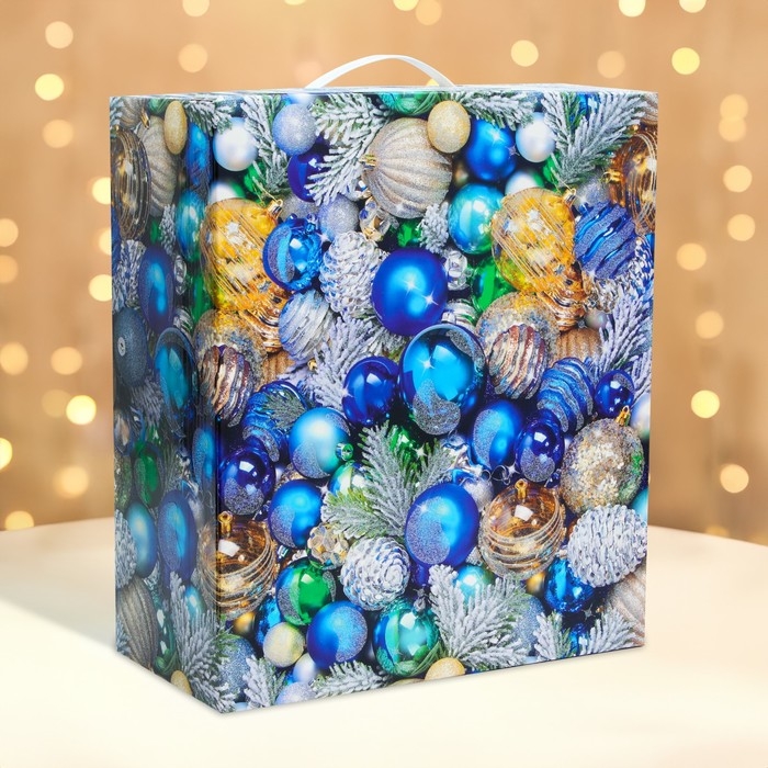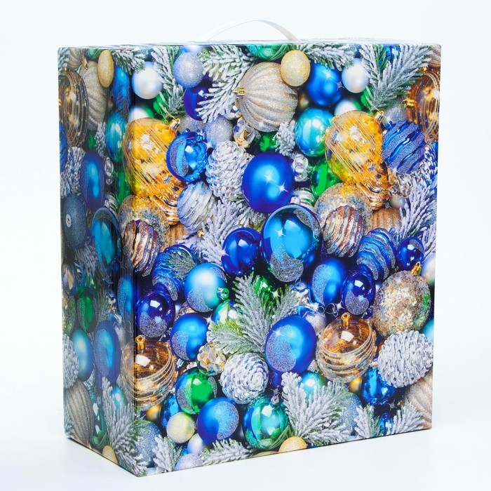 Новый год. Подарочная коробка Новогодняя Коробка большая подарочная с пластиковой ручкой "Блеск" 285х140х330 мм.