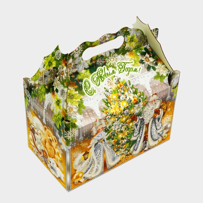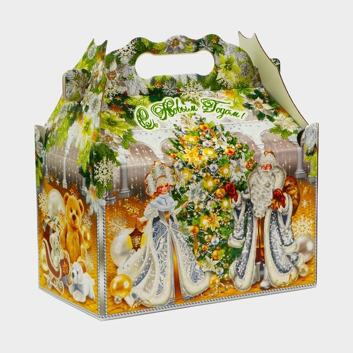 Коробка выполнена из качественных материалов, которые обеспечивают сохранность содержимого. Она имеет яркий и красочный дизайн, который отражает атмосферу Нового года.