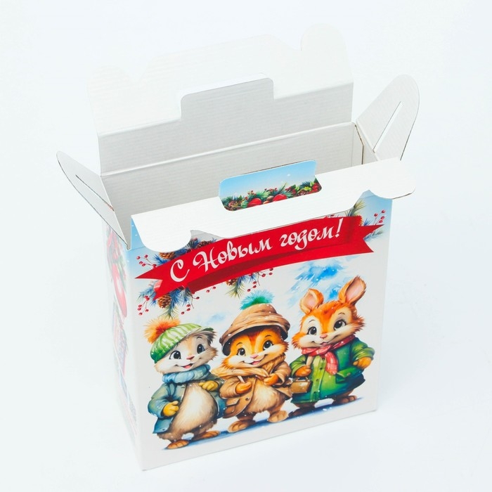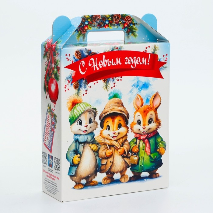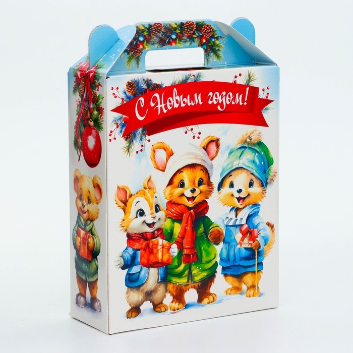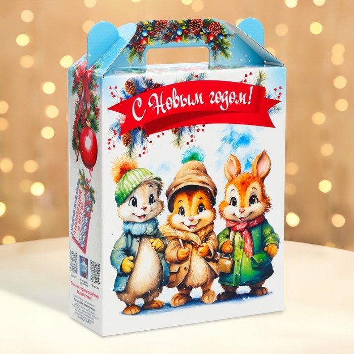 Коробка выполнена из качественных материалов, которые обеспечивают сохранность содержимого. Она имеет яркий и красочный дизайн, который отражает атмосферу Нового года.