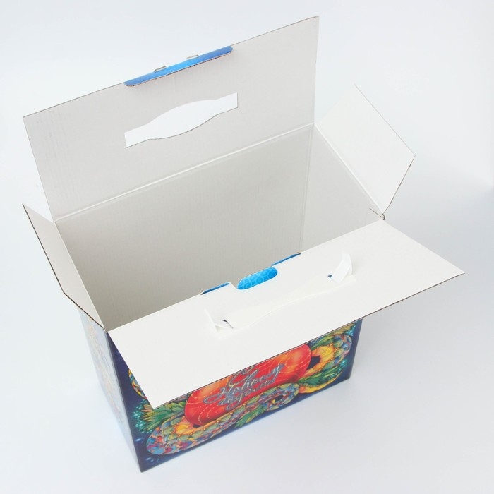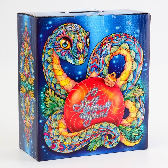 Новый год. Подарочная коробка, Новогодняя с пластиковой ручкой "Восточная змея"28,5*14*33 см.