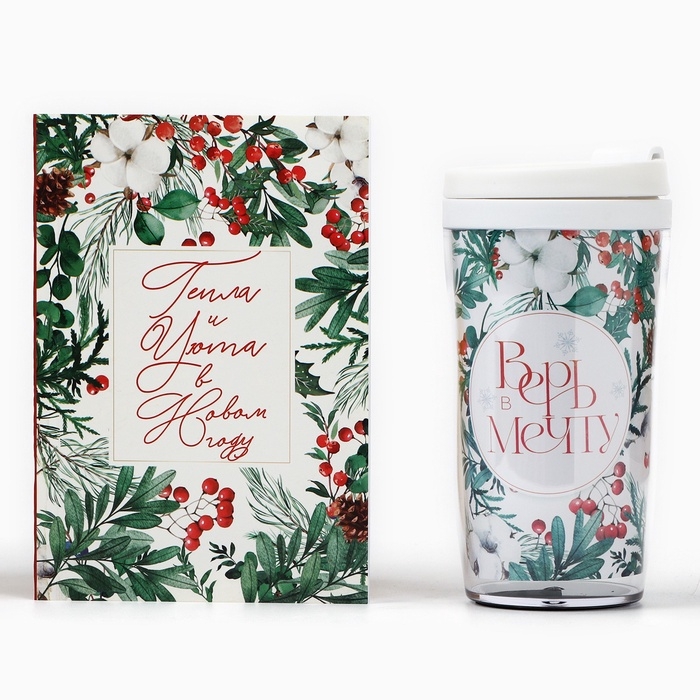 Новый год. Подарочный набор: ежедневник А6 80 листов и термостакан 250 мл «Мечтай в Новом году»