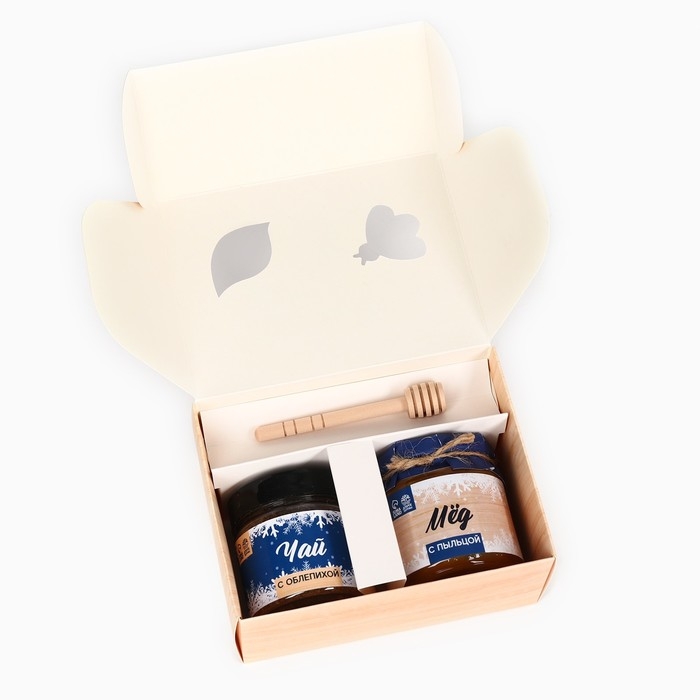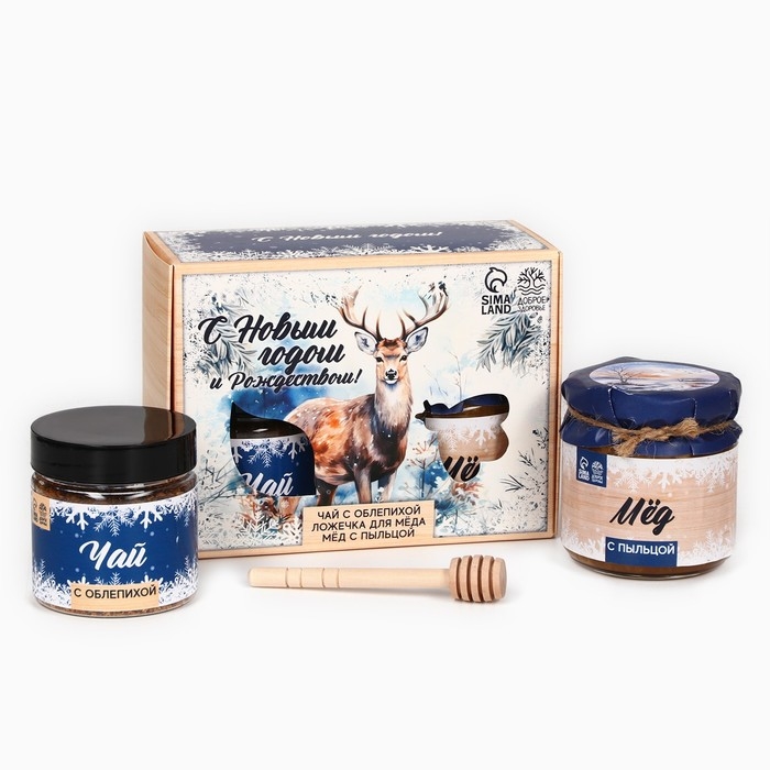 Новый год! Подарочный набор: мёд, 240 гр, чай 50 гр, ложка «С Новым годом и Рождеством»