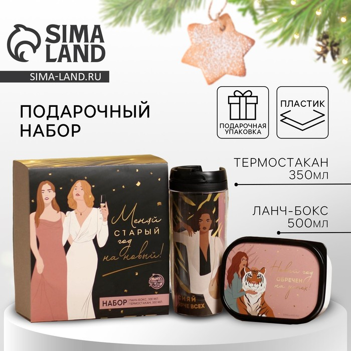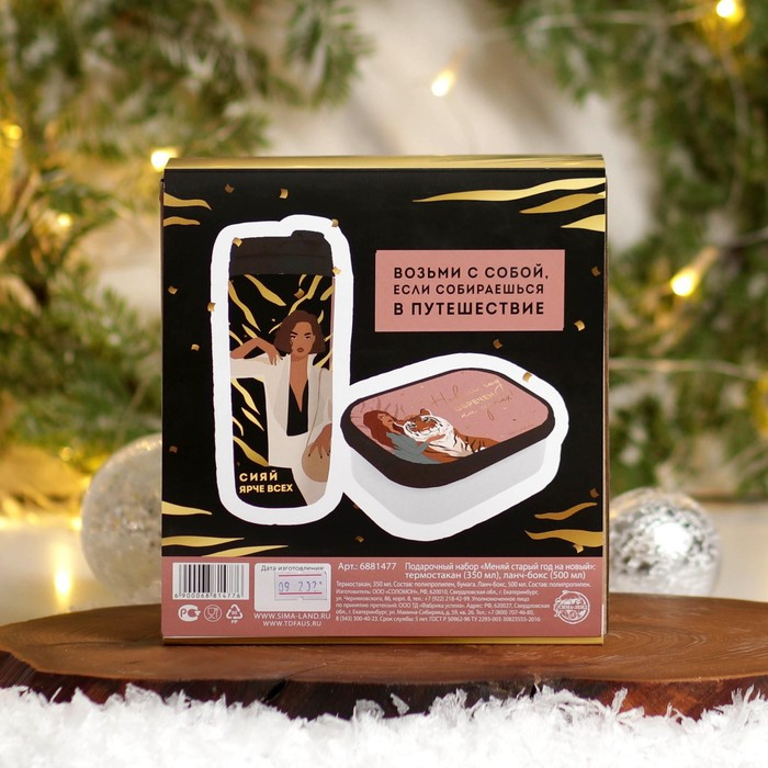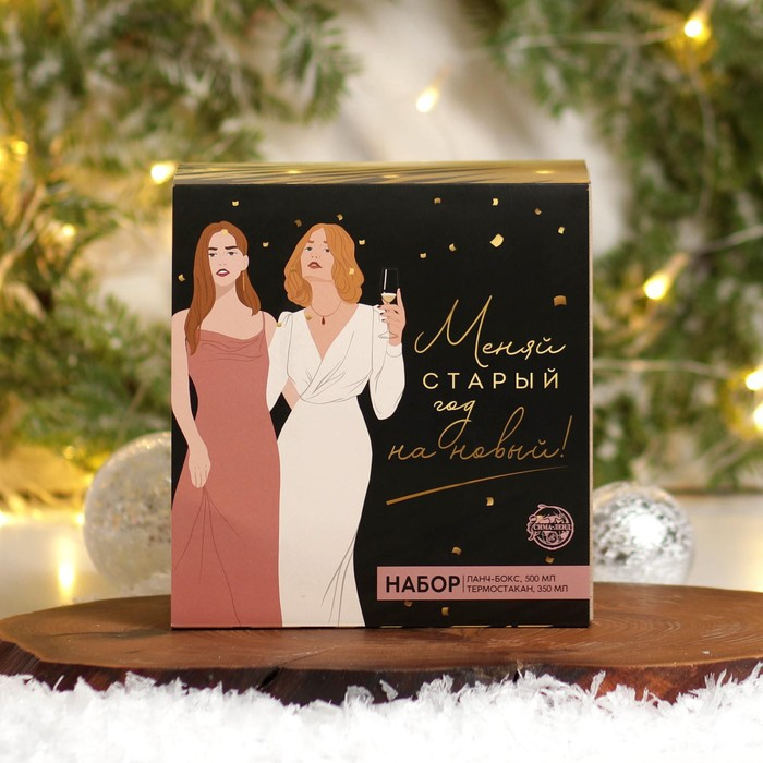 Новый год. Подарочный набор «Меняй старый год на новый»: термостакан 350 мл., ланч-бокс 500 мл