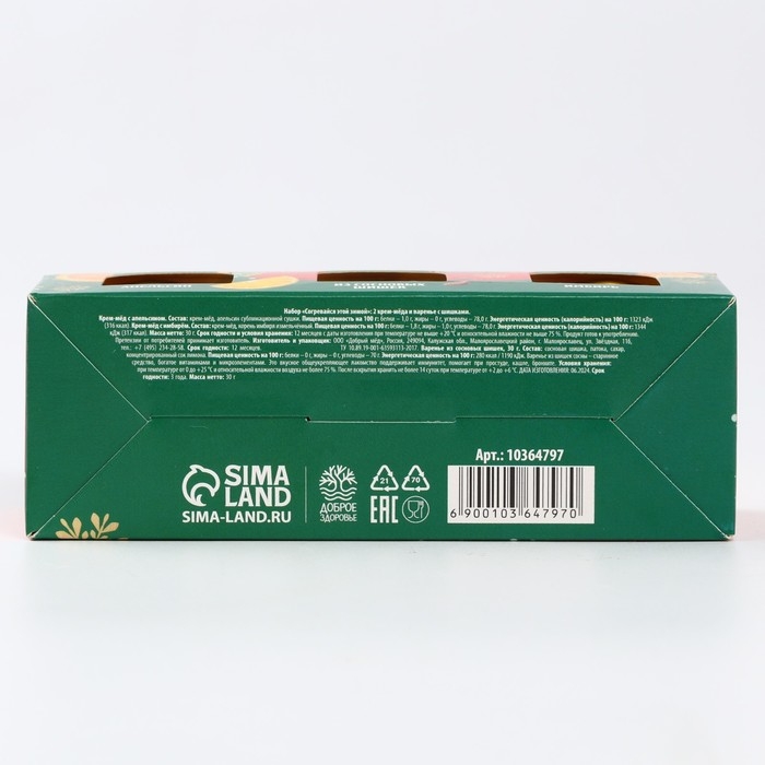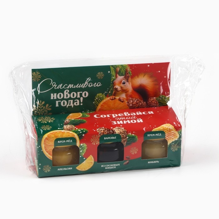 Новый год! Подарочный набор «Согревайся этой зимой», два Мёд кремовыйа и варенье с шишками, 3 х 30 г