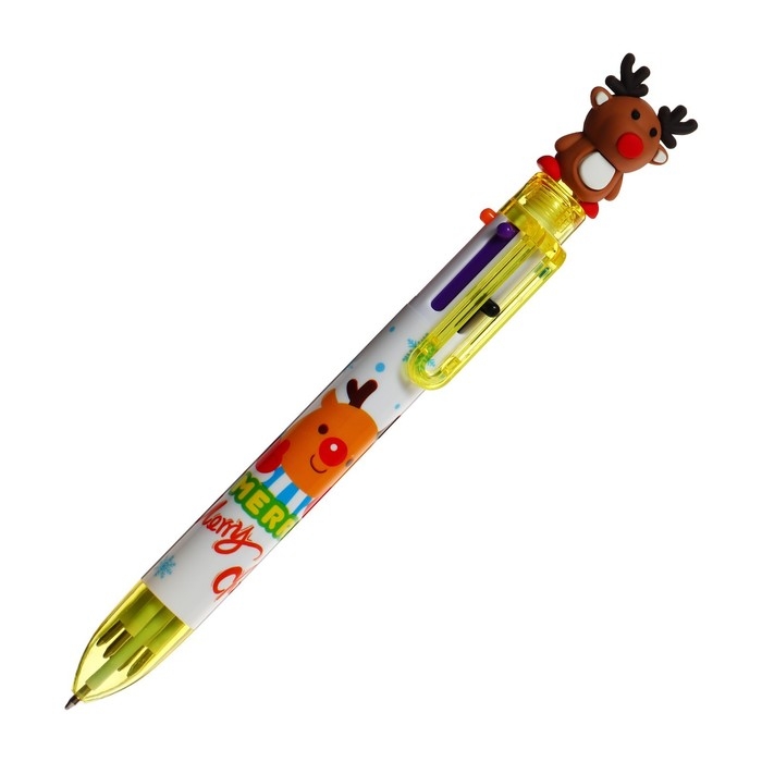 Новый год. Ручка шариковая, автоматическая "Новый год", 6-ти цветная, МИКС