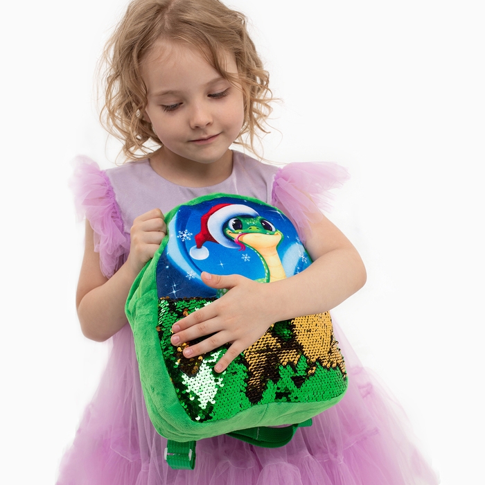 Новый год! Рюкзак детский новогодний «Змейка» с пайетками, 23х28 см, цвет зелёный