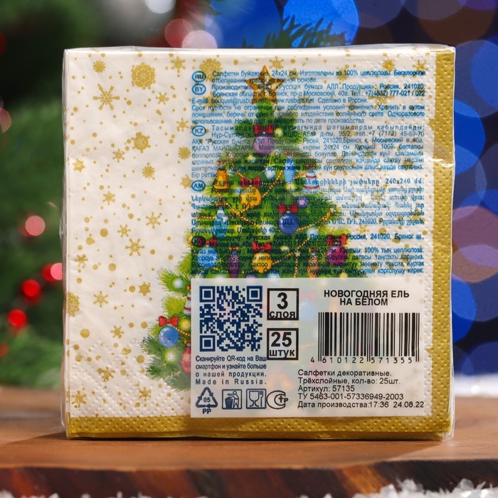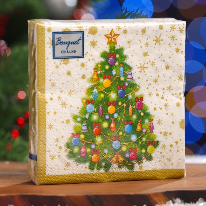 Новый год. Салфетки бумажные Art Bouquet "Новогодняя ель на белом", 3 слоя, 24x24, 25 листов