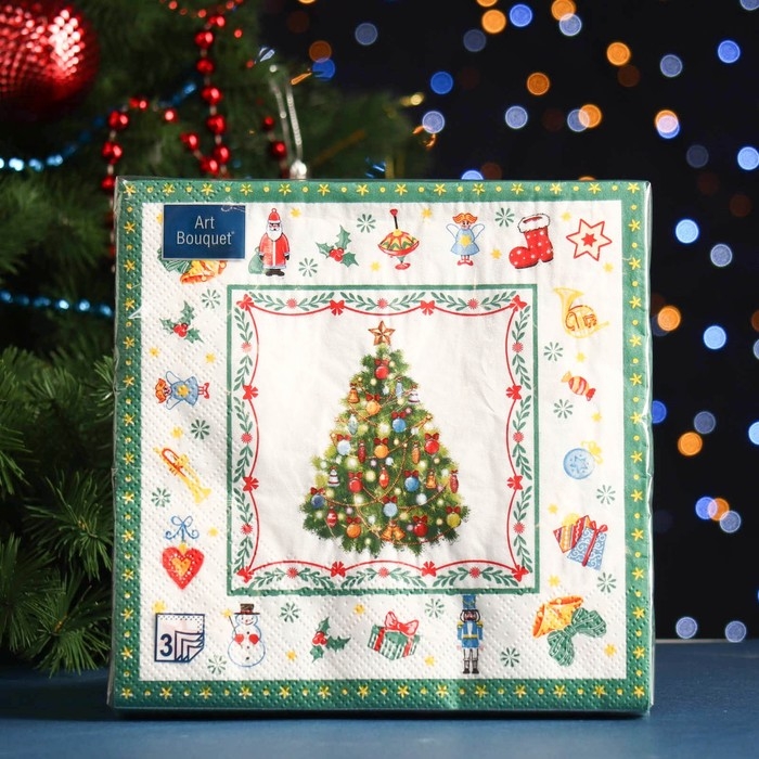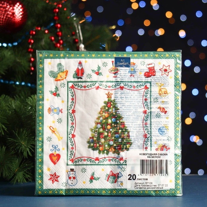 Новый год. Салфетки бумажные "Art Bouquet" Новогодняя сказка на белом, 3 слоя,33x33, 20 листов