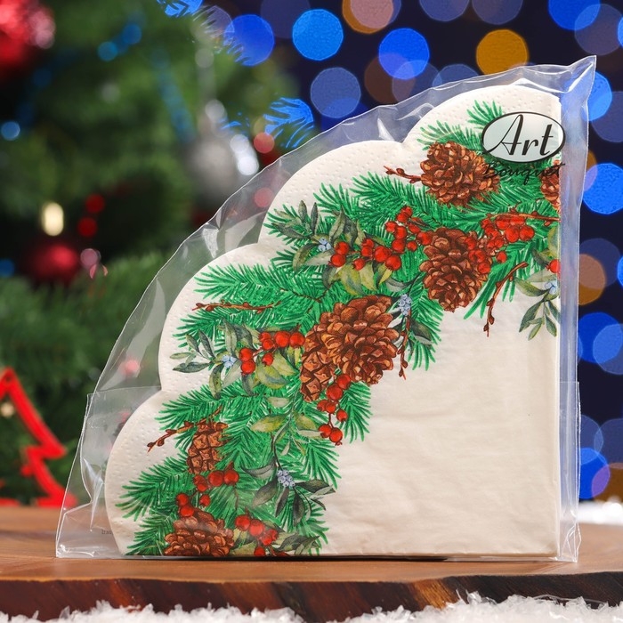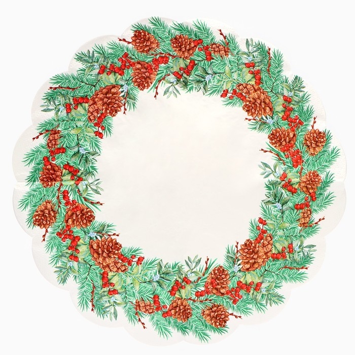 Новый год. Салфетки бумажные Art Bouquet Rondo "Новогодний венок - 3" , 3 слоя, d 32, 12 шт