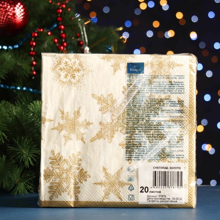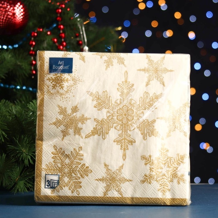 Новый год. Салфетки бумажные "Art Bouquet" Снегопад. золото, 3 слоя,33x33, 20 листов