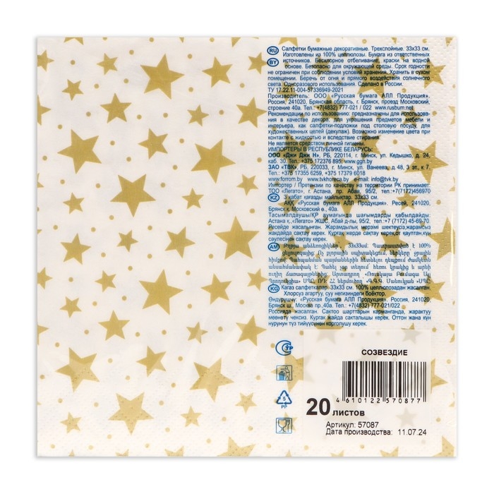 Новый год. Салфетки бумажные "Art Bouquet" Созвездие, 3 слоя,33x33, 20 листов