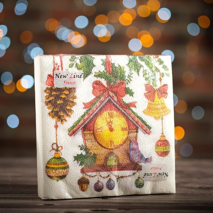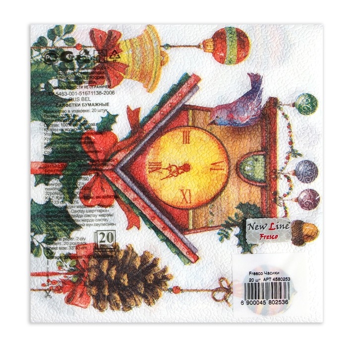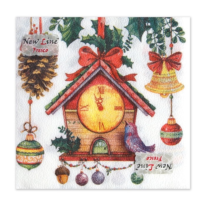 Новый год. Салфетки бумажные Fresco Часики, 2 слоя, 33*33 см, 20 листов