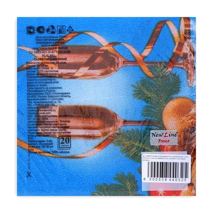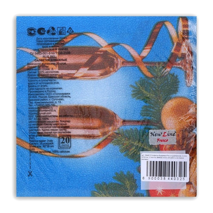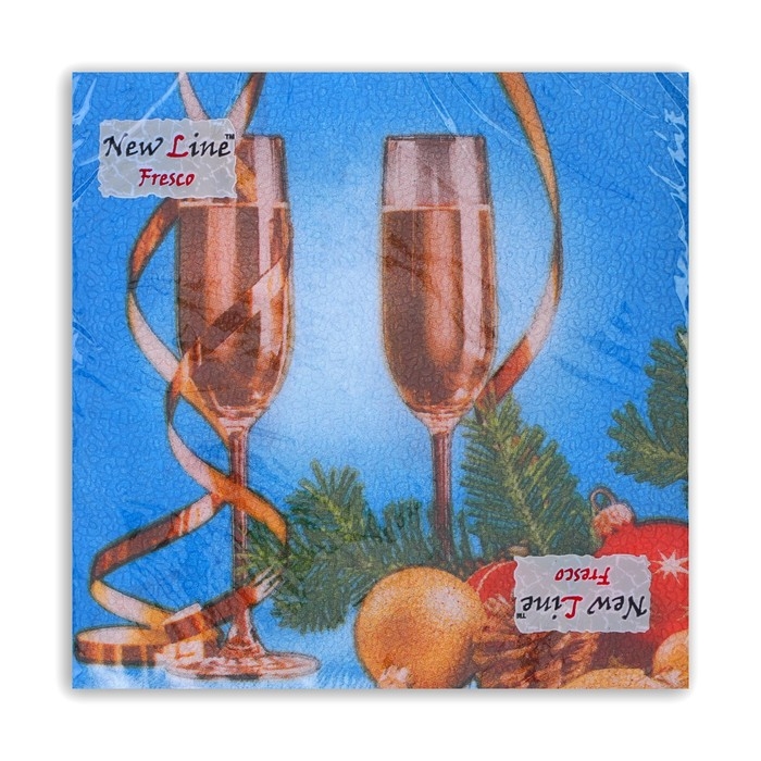 Новый год. Салфетки бумажные Fresco "Шампанское", 2 слоя, 33*33 см, 20 листов