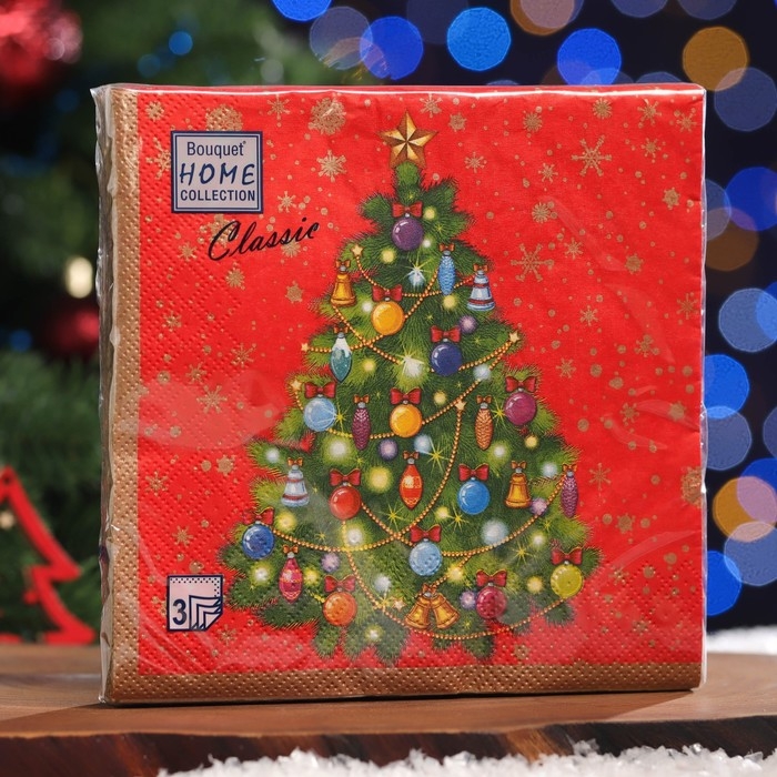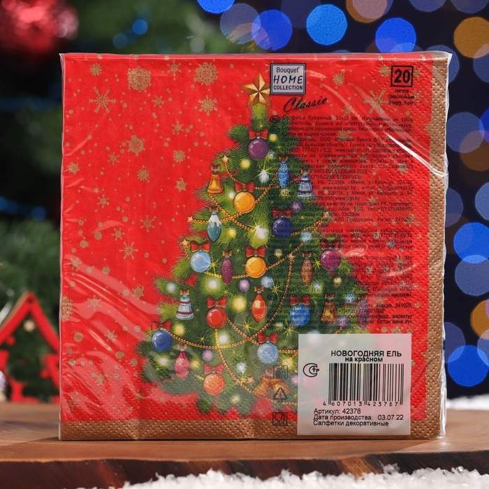 Новый год. Салфетки бумажные Home Classic "Новогодняя ель на красном", 20 листов