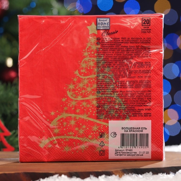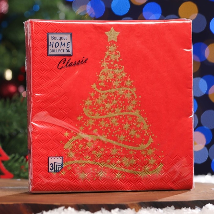 Новый год. Салфетки бумажные Home Classic "Волшебная ель на красном", 3 слоя,33x33, 20 листов