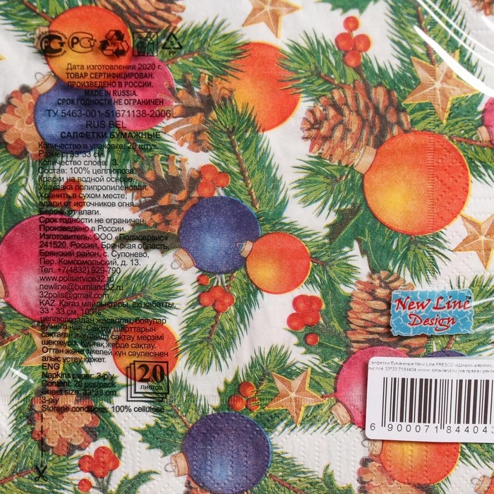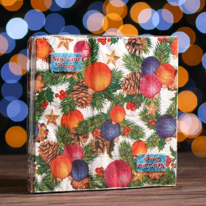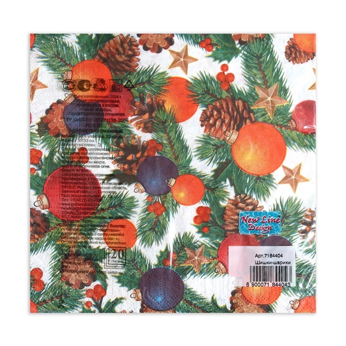 Новый год. Салфетки бумажные New Line Design «Шишки-шарики», 33х33 см, 3 слоя