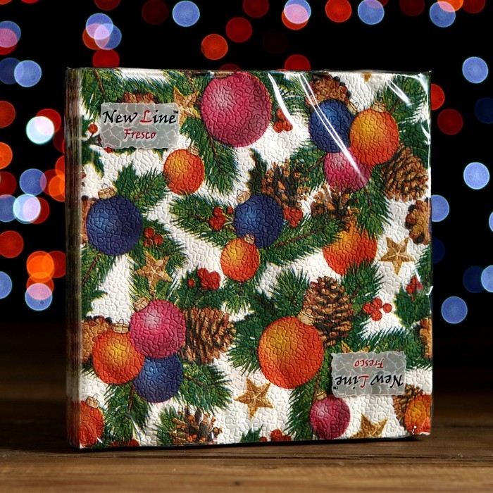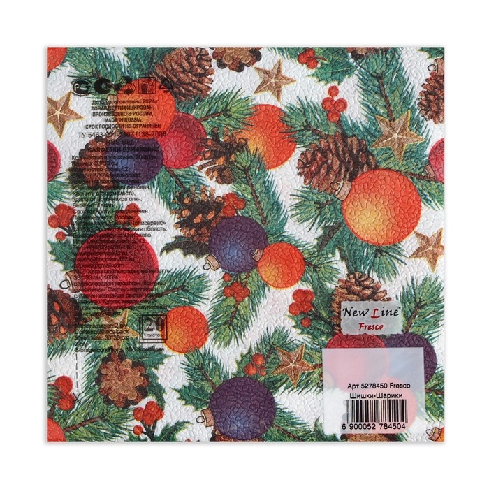 Новый год. Салфетки бумажные New Line FRESCO Шишки-Шарики 2 слоя 20 листов
