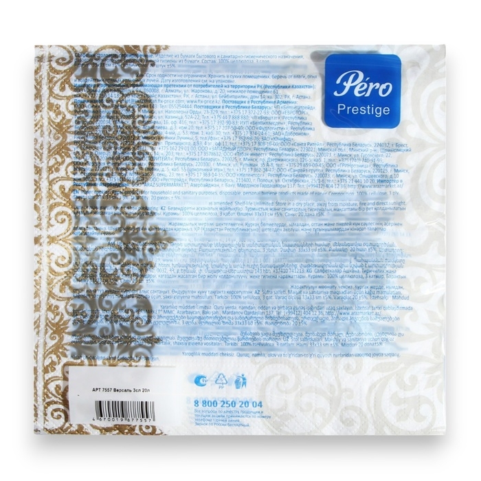 Новый год. Салфетки бумажные Pero Prestige «Версаль», 3 слоя, 33х33, 20 шт.