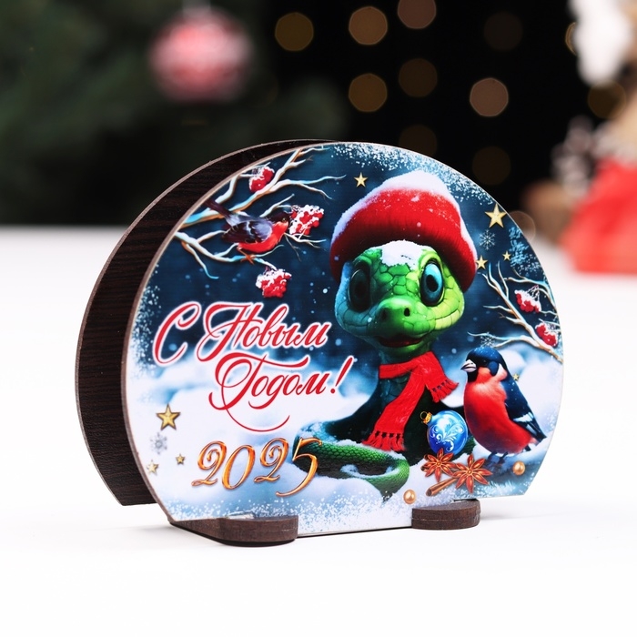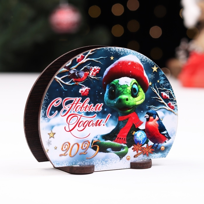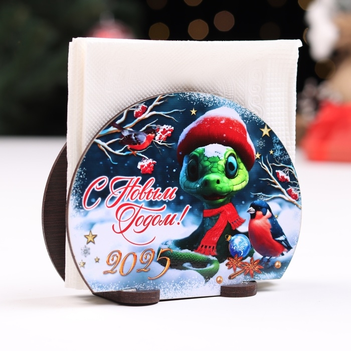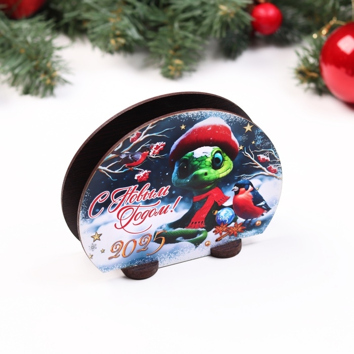 Новый год. Салфетница с символом года №1 "Змейка и снегирь", 13х10х5 см