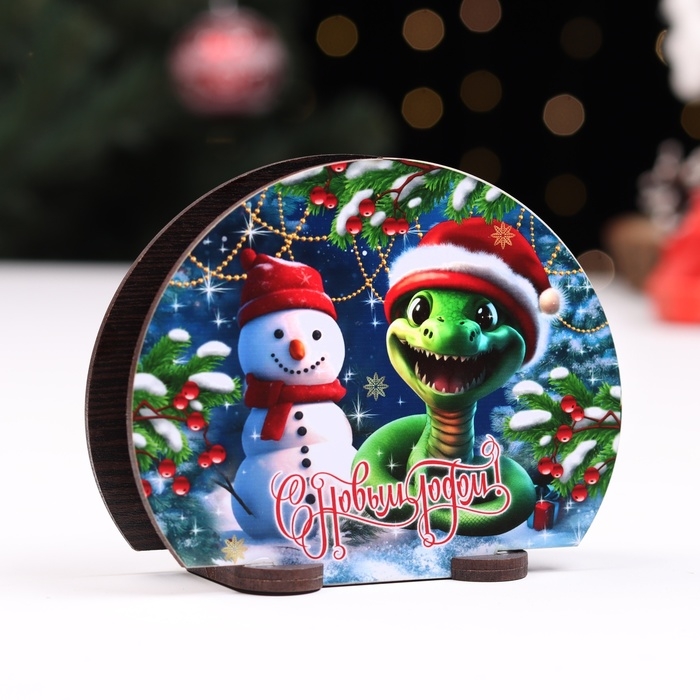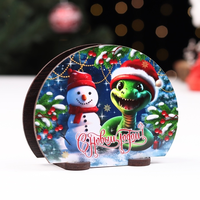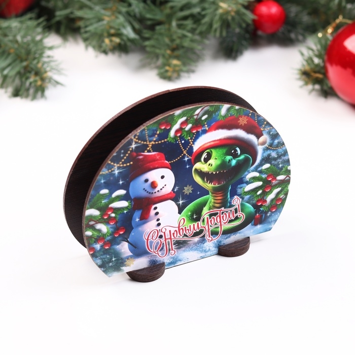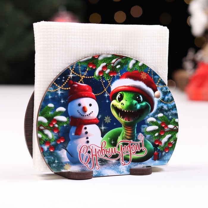Новый год. Салфетница с символом года №2 "Змейка и снеговик", 13х10х5 см