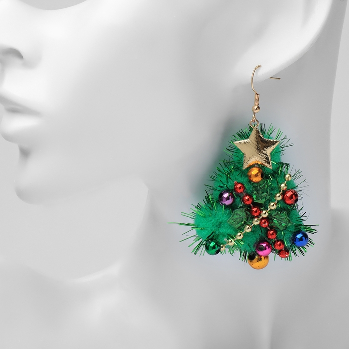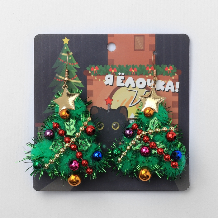 Новый год! Серьги «Новогодние» ёлочка с гирляндой, цветные в золоте