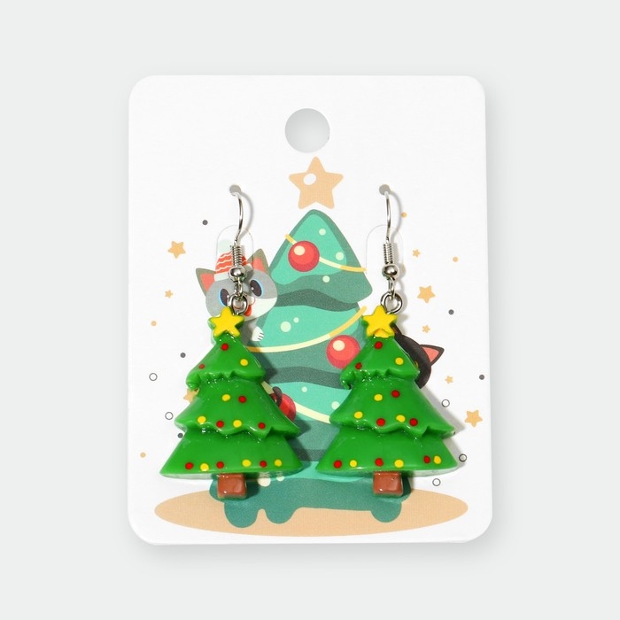 Новый год! Серьги «Новогодние» ёлочка со звездой, цвет жёлто-зелёный в серебре