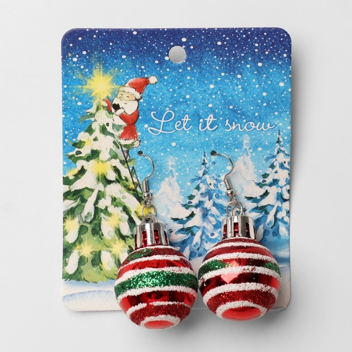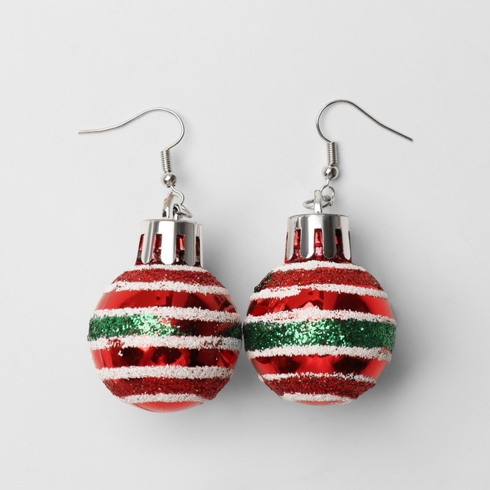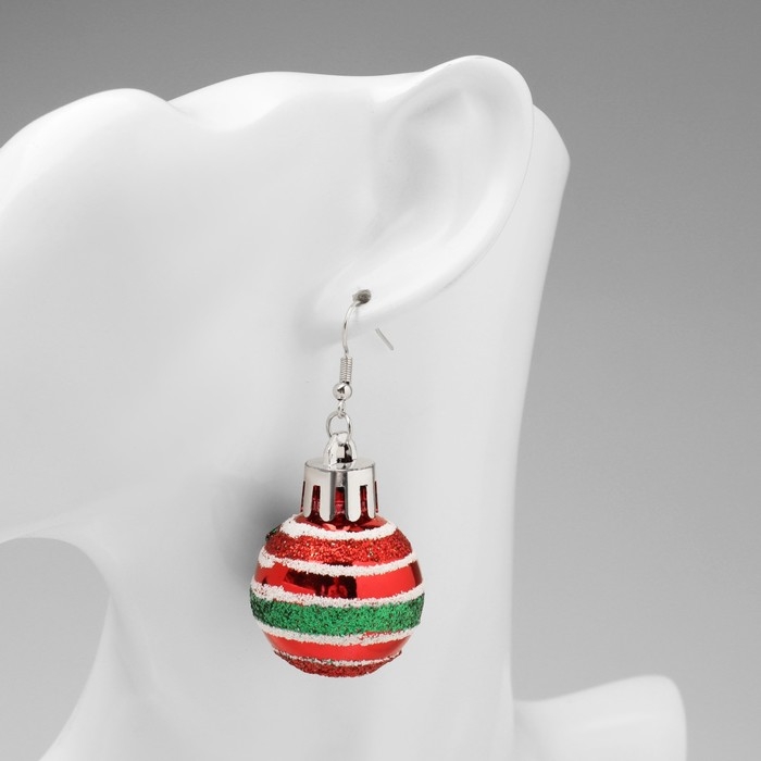 Новый год! Серьги «Новогодние» ёлочные шарики, блеск, цвет красно-зелёный в серебре