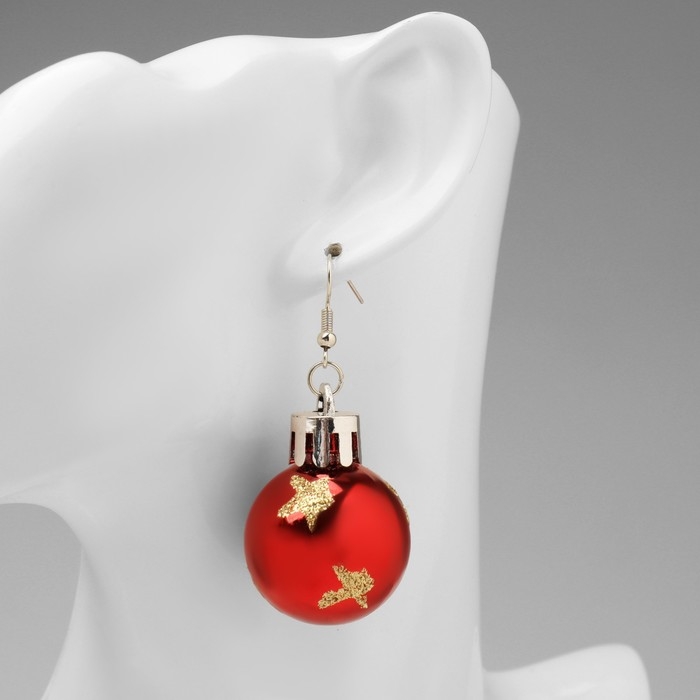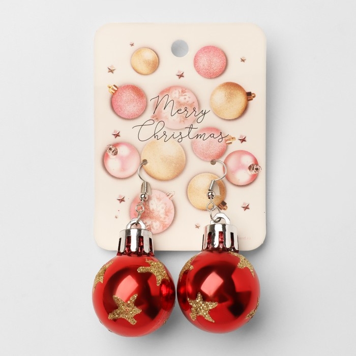Новый год! Серьги «Новогодние» ёлочные шарики, цвет красный в серебре