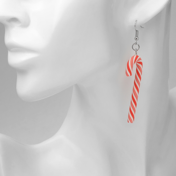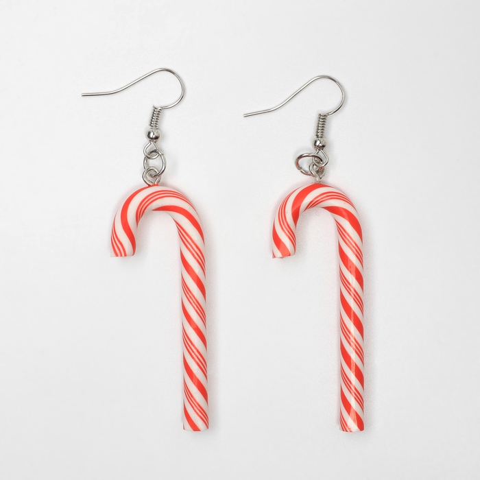 Новый год! Серьги «Новогодние» леденец, цвет бело-красный в серебре