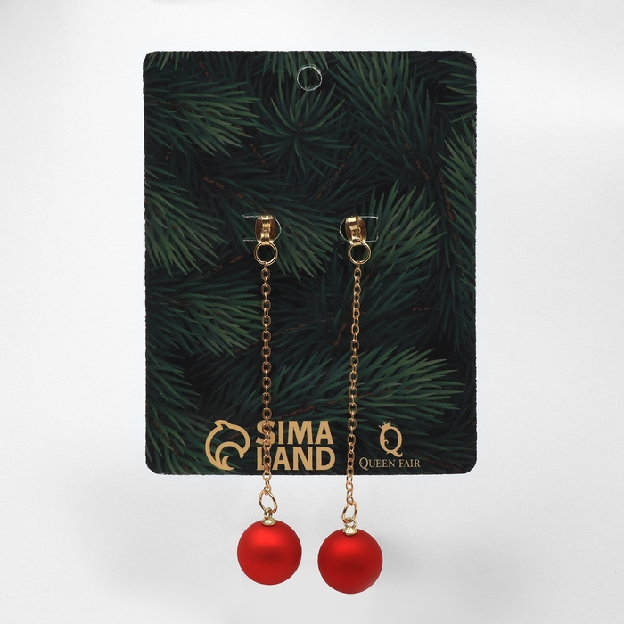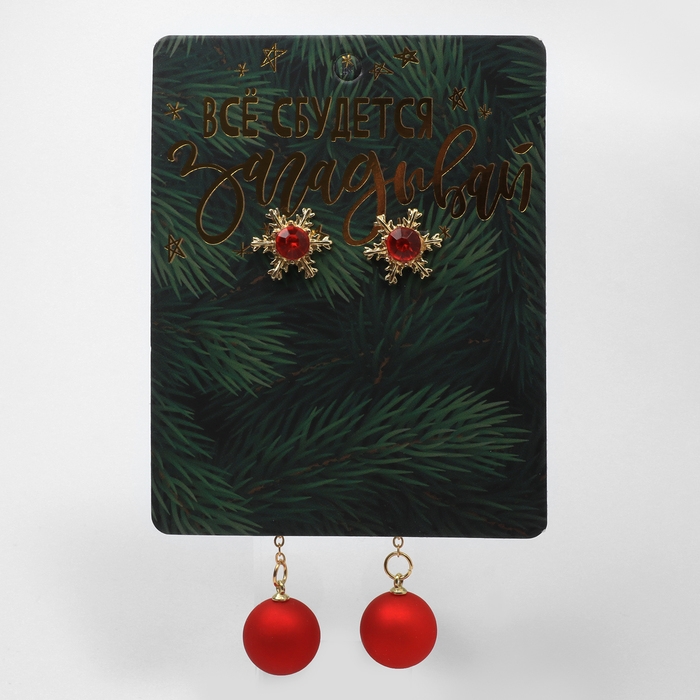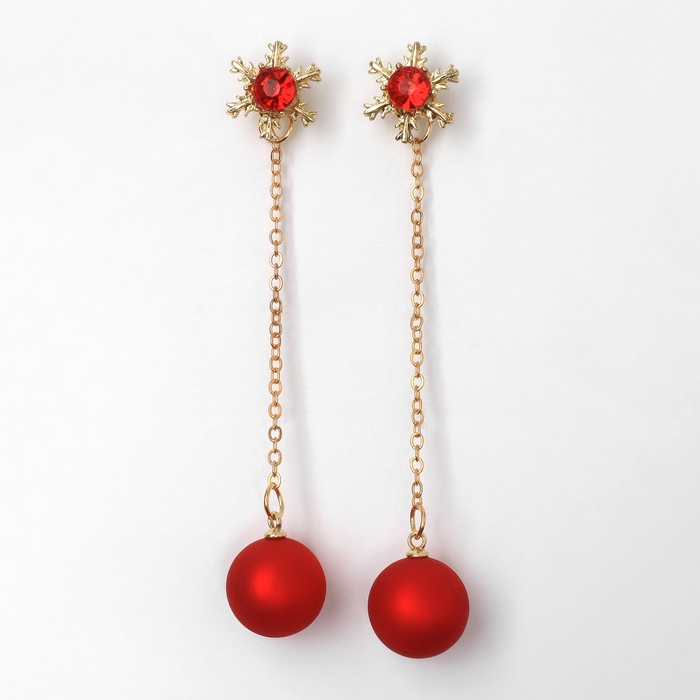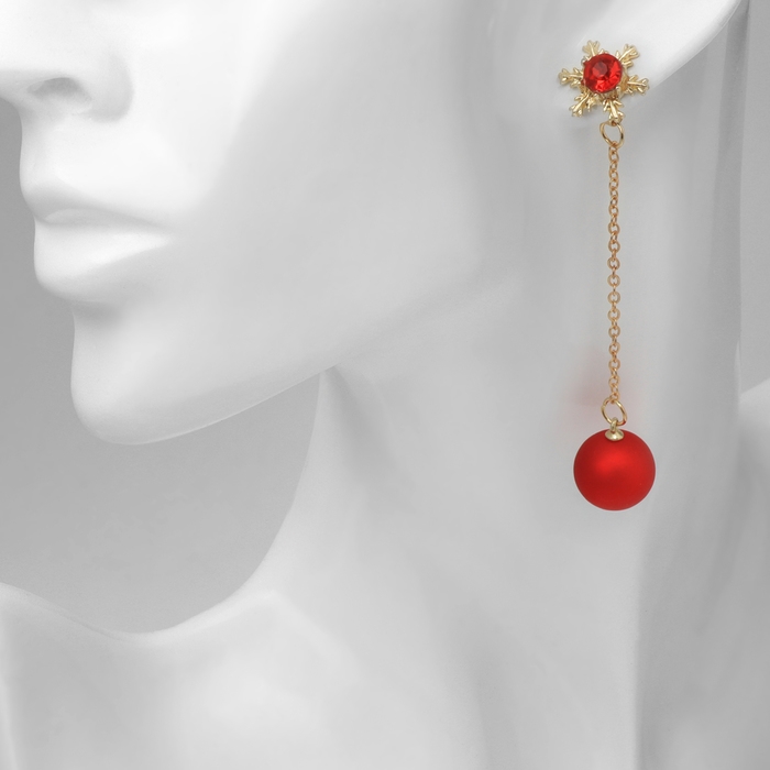 Новый год! Серьги «Новогодние» висячие, шар и снежинка, цвет красный в золоте