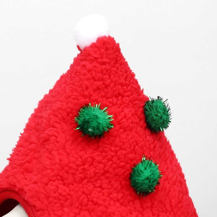 Шапка для животных - настоящее волшебство для вашего пушистого друга!! Этот уютный колпак на завязках не только согреет вашего любимца в холодные дни, но и добавит ему невероятную праздничную изюминку. Зеленые помпончики, словно маленькие елочные шарики, придают этой шапке особое очарование. Пусть ваша пушистая звезда сияет ярче на празднике, благодаря этой теплой и стильной шапке!
